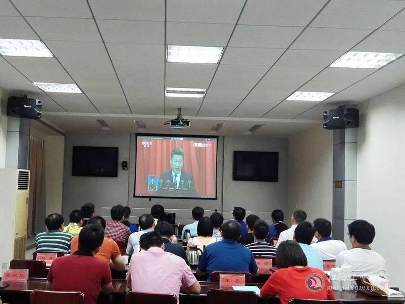 7月1日上午10点,江西工业贸易职业技术学院组织中层及以上干部收看庆祝中国共产党成立95周年大会电视直播,认真聆听习近平总书记在大会上发表的重要讲话。