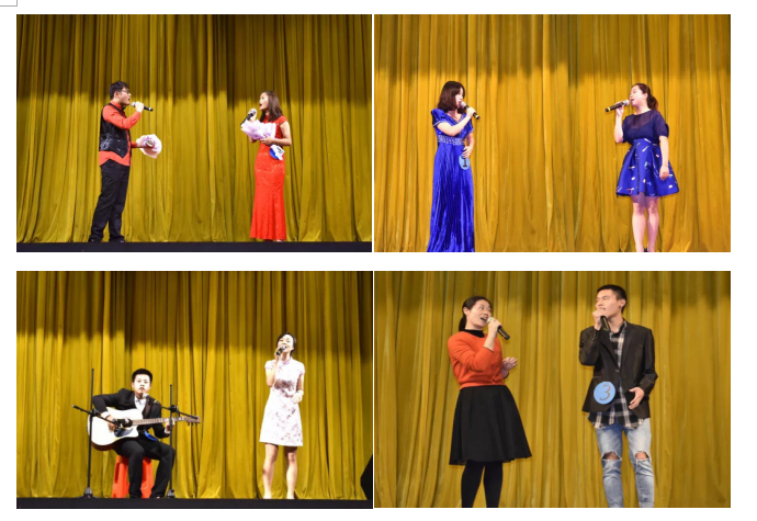 第二轮老师帮帮唱环节,一首《乌兰巴托的夜》在经济贸易系陈志能同学的吉他弹唱和王芳老师清亮柔美的演唱中,美丽的草原仿佛就在我们眼前;旅游商务系齐雨晴同学和黄昊老师舞台合唱《花好月圆夜》赢得了台下阵阵喝彩声;一首热血的《逆战》在粮工建艺系陈超逸同学和章勇辉老师的共同演绎下,将比赛推向了一个高潮。老师们的倾情助唱为选手们的演唱增色不少,同时展现了学院青年教师们不一样的风采。
