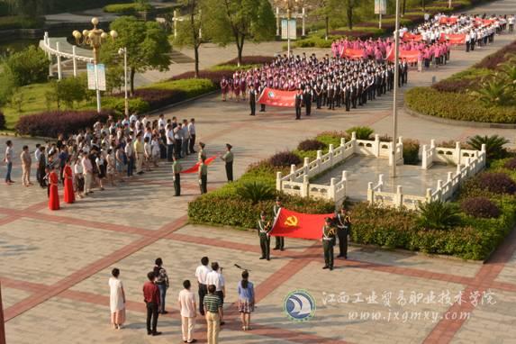 (党委宣传部 聂慧芬报道)为了践行社会主义核心价值观,培养学院师生爱国、爱党的信念,纪念中国共产党建党九十五周年。6月13日早上,学院庆祝“建党95周年”升国旗系列活动在图书馆国旗广场隆重举行,学院在家领导、中层干部、在校居住教工党员及各系(部)学生党员、学生代表共计700余人参加仪式并作宣誓。
