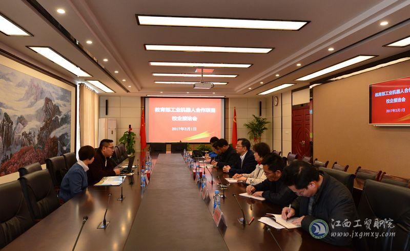 3月1日上午,北京华航唯实机器人科技有限公司华中区总监李名贵、江西区域合作项目负责人李建辉和江西地区销售经理赖艳一行三人来校对接教育部工业机器人领域职业教育合作项目。学院党委书记、院长万玉青,副院长、纪委书记雷筱芬,院长助理艾苏龙在行政楼415会议室热情接待了客人。教务处、机电工程系等部门负责同志参加会议。