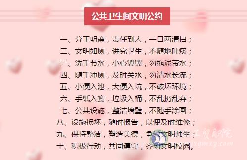 文明校园创建从厕所文化开始,请大家积极行动起来吧,从我做起、从小事做起,积极支持参与“厕所革命”,让我们的厕所更加文明,让我们的校园更加清新美好!