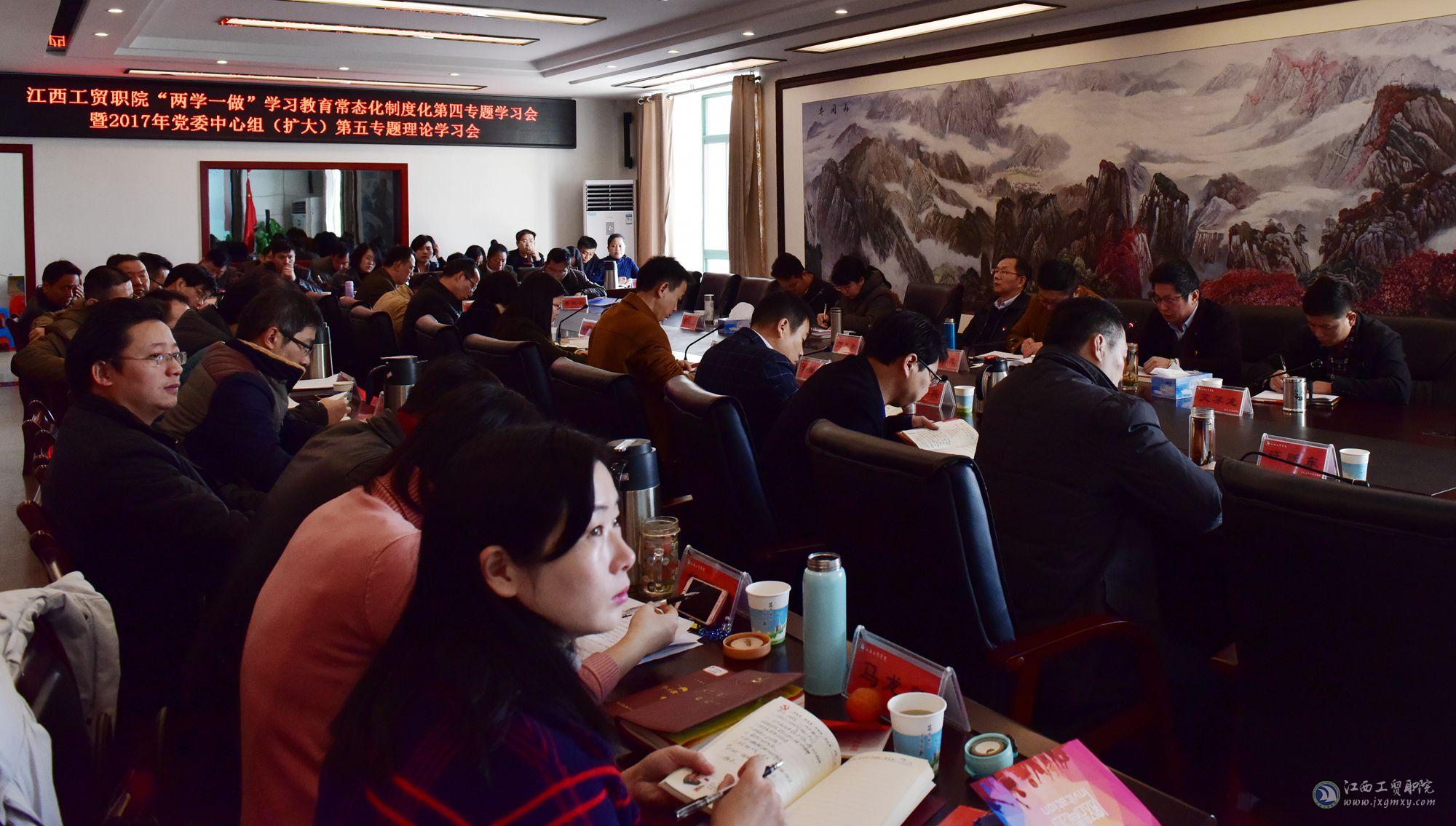 12月25日,江西工业贸易职业技术学院召开2017年党委中心组第五次学习会,传达学习中央、省委相关通知精神,对“两学一做”学习教育常态化制度化第四专题进行学习研讨。学院党委书记万玉青主持并作讲话,全体中层以上干部参加学习会。