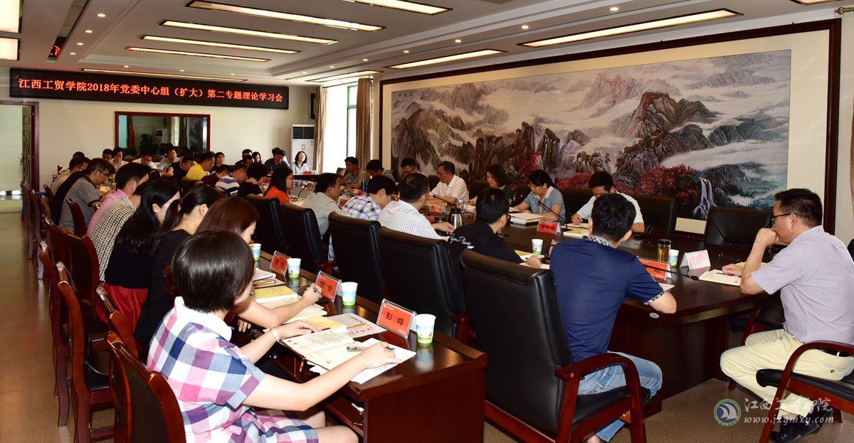 6月19日,江西工业贸易职业技术学院召开2018年党委中心组(扩大)第二专题理论学习会,深入学习领会习近平新时代中国特色社会主义思想,贯彻落实党的十九大和十九届中纪委二次全会,全国、全省教育工作会议和省委十四届五次全会精神。学院党委书记万玉青主持会议并作总结讲话,全体党委委员以及中层以上干部参加学习会。