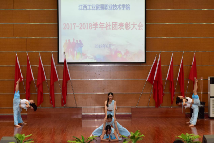 活动共分为两个部分,一是表彰大会,会上副院长赵淑华宣读了《关于表彰2017-2018学年优秀社团、优秀社长及优秀社员的决定》对舞蹈队等9个社团、刘斌等9名社长、罗小晴等254名社员进行表彰,学工处处长·武装部部长李尊华宣读了《关于2017-2018学年学生社团校外获奖情况的通报》;二是社团汇报表演,吉他社、街舞社、瑜伽社、舞蹈队等8个社团现场进行了社团学习成果展示。学院现有29个院级社团,在本学年学生社团组织开展了三十多项具有鲜明特色的文化活动,并积极参加省、市各类竞赛活动,取得良好的成绩。