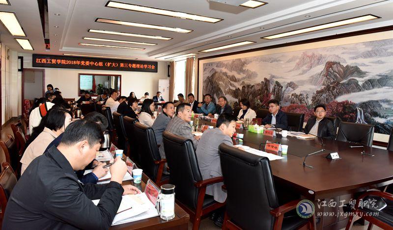 10月17日,江西工业贸易职业技术学院在求是楼第二会议室召开2018年党委中心组(扩大)第三专题理论学习会,学院党委书记万玉青主持会议并作总结讲话,全体党委委员以及中层以上干部参加学习会。