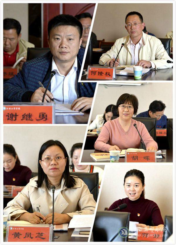 会上,与会人员集体观看了反邪教教育宣传片;党委副书记、院长雷筱芬传达学习习近平总书记在全国宣传思想工作会议上的重要讲话精神;党委委员、调研员郝育忠传达学习习近平总书记9月10日在全国教育大会上的重要讲话精神;党委委员、副院长周晓邑同志传达学习省委十四届六次全会精神和《回望峥嵘读初心——发生在江西红土地上的100个经典革命故事》;党委委员、纪委书记万晓波同志传达学习新修订的《中国共产党纪律处分条例》《江西省人民政府办公厅关于贯彻落实国务院和省政府第一次廉洁工作会议精神任务分工的通知》,中共江西省直属机关纪律委员会《关于5起省直机关科级干部违反中央八项规定精神典型问题的通报》和中共中央江西省纪委《关于2起违反中央八项规定精神问题的通报》等文件精神;党委委员、院长助理艾苏龙同志传达学习《省委书记刘奇在南昌大学形势与政策报告会上的讲话》精神;郝育忠、谢继勇、何隆权、胡晖、李尊华、何静、黄凤芝七位同志围绕专题学习依次交流发言。(文/图 涂烨 袁孟辉)