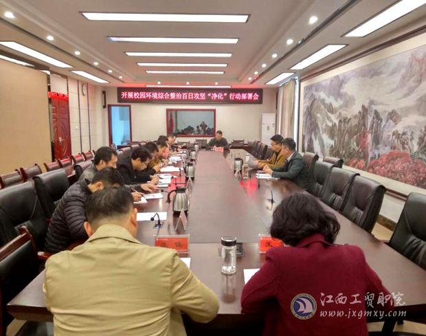会上,周晓邑副院长首先传达了省教育厅下发的《关于印发<江西省校园环境综合整治百日攻坚“净化”行动实施方案>的通知》精神、省委书记刘奇讲话精神,并强调了此次会议的重要性,随后,学院办公室主任刘国红对学院印发的《校园环境综合整治百日攻坚“净化”行动实施方案》进行解读。周晓邑副院长表示各个部门要对照方案要求开展环境整治工作,要明确责任,积极配合,共同努力,使校园环境做到“洁、净、美”。