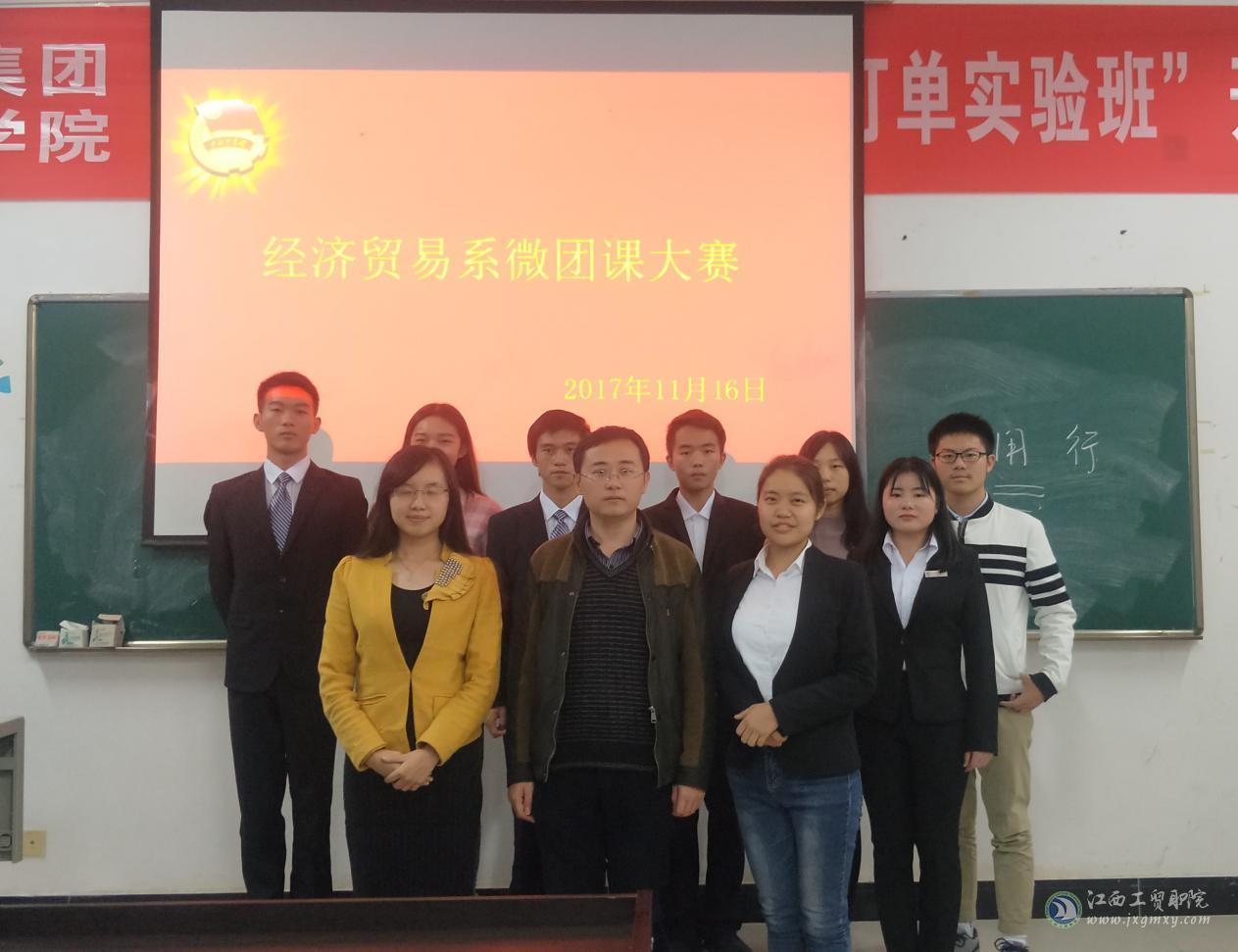 为深入贯彻落实习近平总书记在全国高校思想政治工作会议上的重要讲话精神,创新团课教学形式,丰富团课教学内容,切实增强团员先进性和光荣感,增强团员先进年性和光荣感,经济贸易系于2017年11月15-16日举办“微团课”大赛。经济贸易系团总支书记徐健老师、辅导员王晓成、唐晓慧老师担任本次比赛评委。