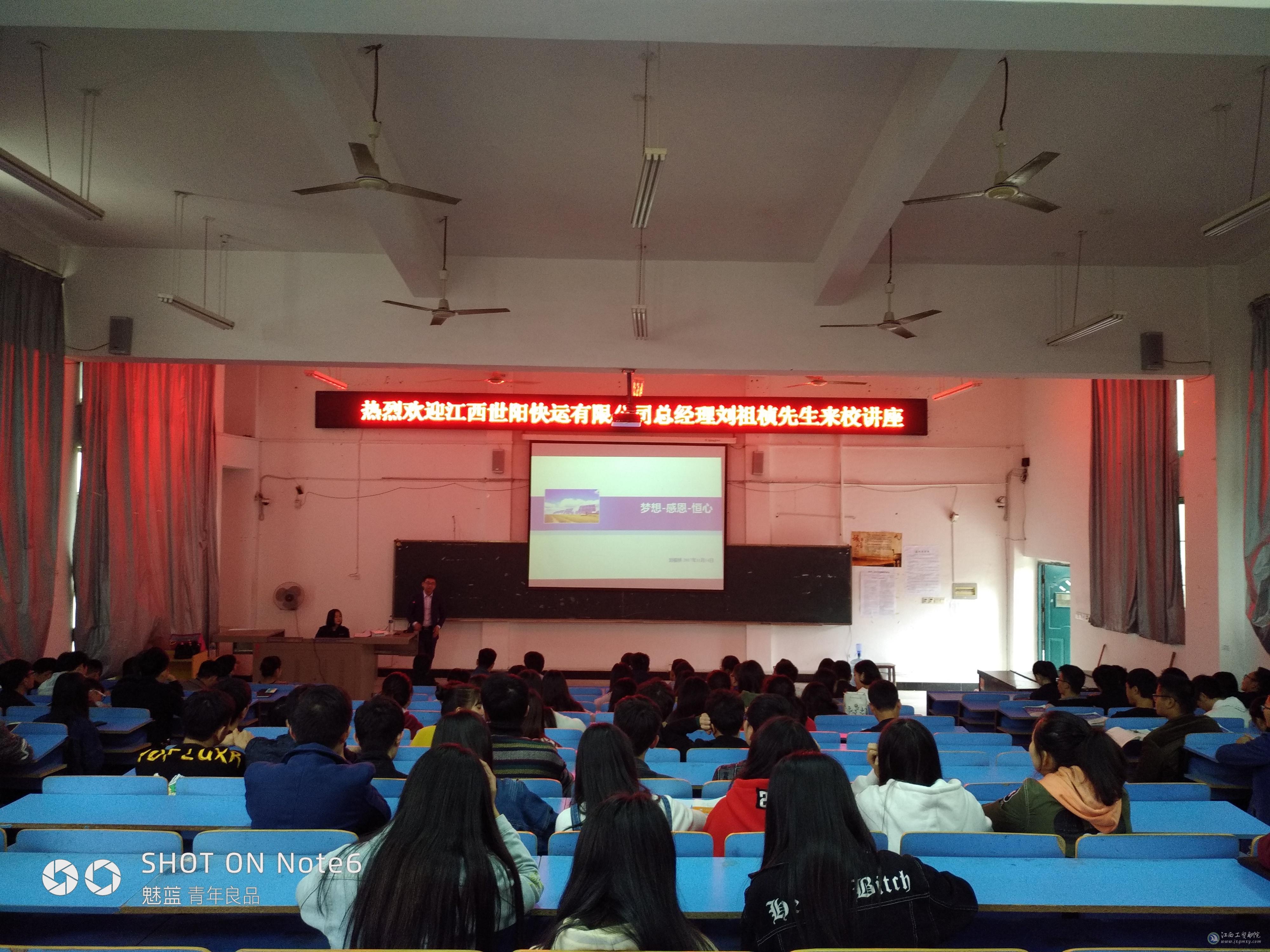 2017年11月14日下午两点,经济贸易系物流管理专业邀请了江西世阳快运有限公司(远成物流下属子公司)总经理刘祖桢先生为学生进行了一场题为“梦想-感恩-恒心”的专业讲座。物流管理教研室全体教师及15、16、17级物流管理专业学生参加了讲座。