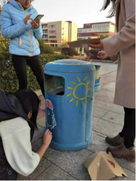 校园内摆放的垃圾桶为我们带来了方便,也为我们良好的校园环境做出了贡献。但由于垃圾桶常年摆放在户外,又担当着盛放垃圾的使命,风吹日晒让它们的外表遭到了不同程度的破坏。2017年12月15日起我院青年志愿者协会组织了“为垃圾桶穿新衣”活动,此次活动旨在贯彻落实十九大精神,培养同学们自觉履行保护环境的义务,从身边小事做起的意识,让大家为美化校园