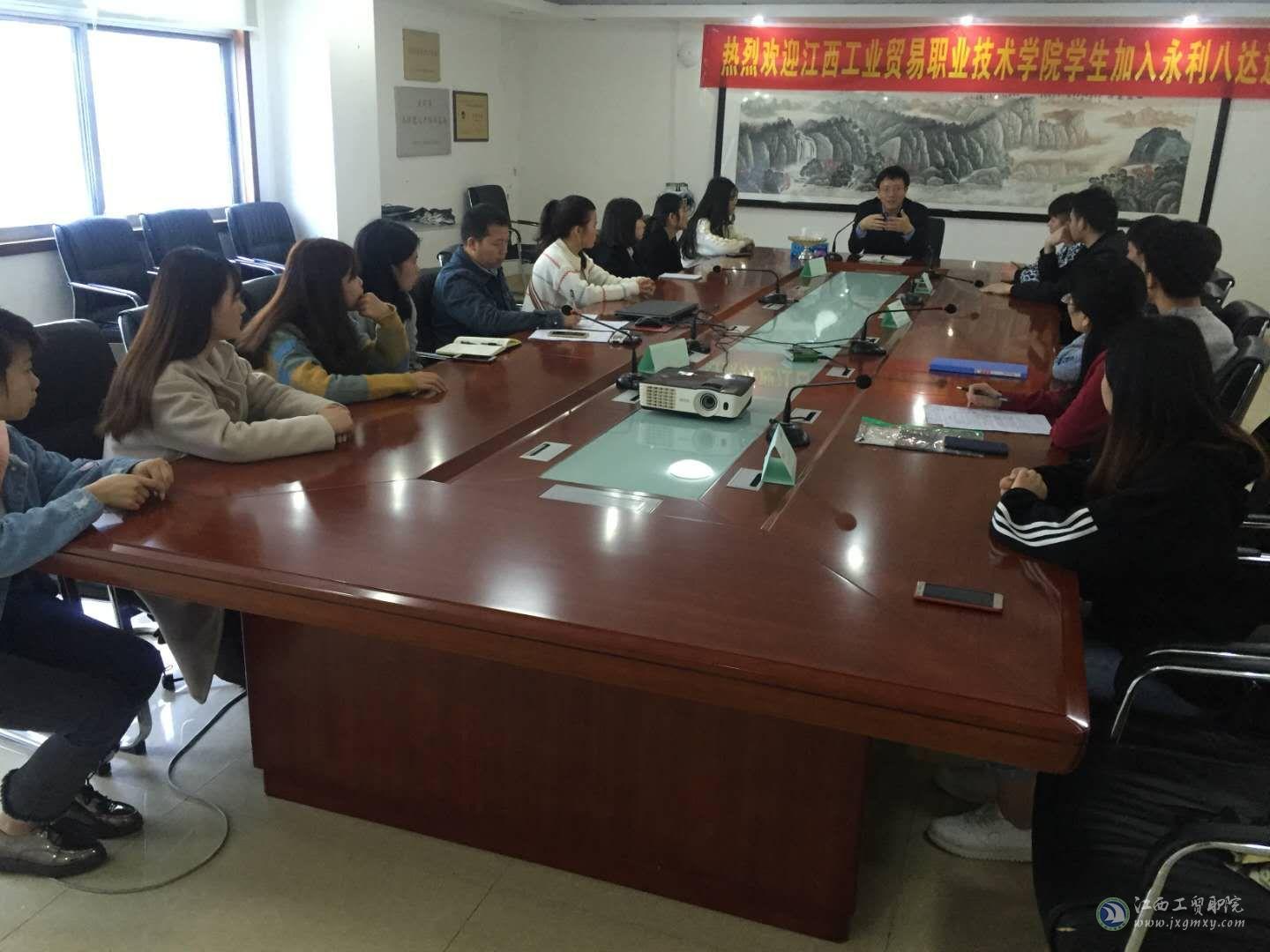 元月六日早上九点在永利八达通公司会议室,企业人资肖主管、人资张总监、企业总负责人陶总亲自接见学生,召开了热烈友好的座谈会,张总重点介绍了学生的实习总体安排,提出了公司殷切的期望,陶总首先热烈欢迎学生们的到来,畅谈了整个跨境电商物流业的发展态势和公司的企业文化,鼓励学生们好好实习,将来在这个朝阳行业展露头脚。(下图为座谈会现场)