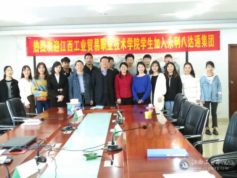 (下图为永利八达通公司领导与实习学生的合影,前排左四是公司人资肖主管、左五是公司人资张总、左六是陶总、左七是邓新红老师,其余均为实习学生)