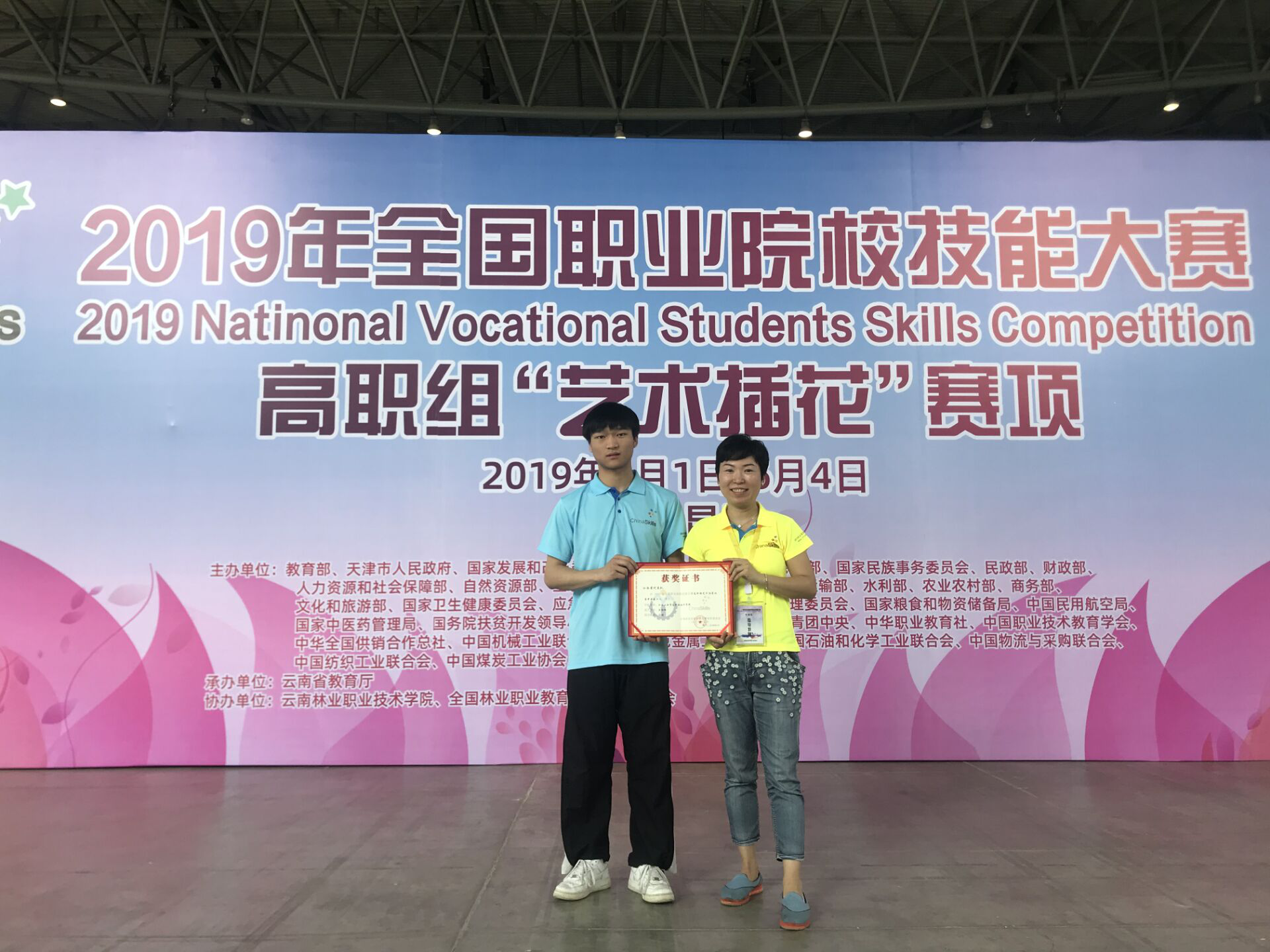 为进一步推进教学改革,提高职业教育教学质量,全面展示花艺行业的最新成果和发展,提升大学生的创新和实践能力,2019年全国职业院校技能大赛高职组“艺术插花”赛项于6.1-6.4日在云南省昆明市云南林业职业技术学院举办。我院首次参赛,选手吴怡权在闵娟老师的精心指导下喜获国赛二等奖。这是建筑室内设计专业首次亮相国赛,也是我院在艺术插花国赛的赛项上的零突破。