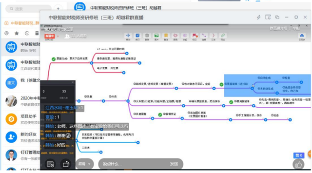 教研室主任胡越君和黄文老师进行知识点拆分细化,通过“体系化的知识架构+碎片化知识点直播+带老师操作+知识点注意事项+学员操作实时指导”的方式进行教学,以智能财税职业技能等级证书三大职能平台(票天下、财天下和金税师)为依托,对参与培训的老师们进行系统的培训与操作训练。