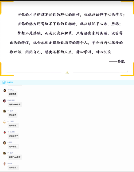 课程最后,Peter老师用心读完一段话,与同学们共勉,大家获益良多,也更有学习的方向和动力,纷纷对Peter老师表达衷心的感谢。
