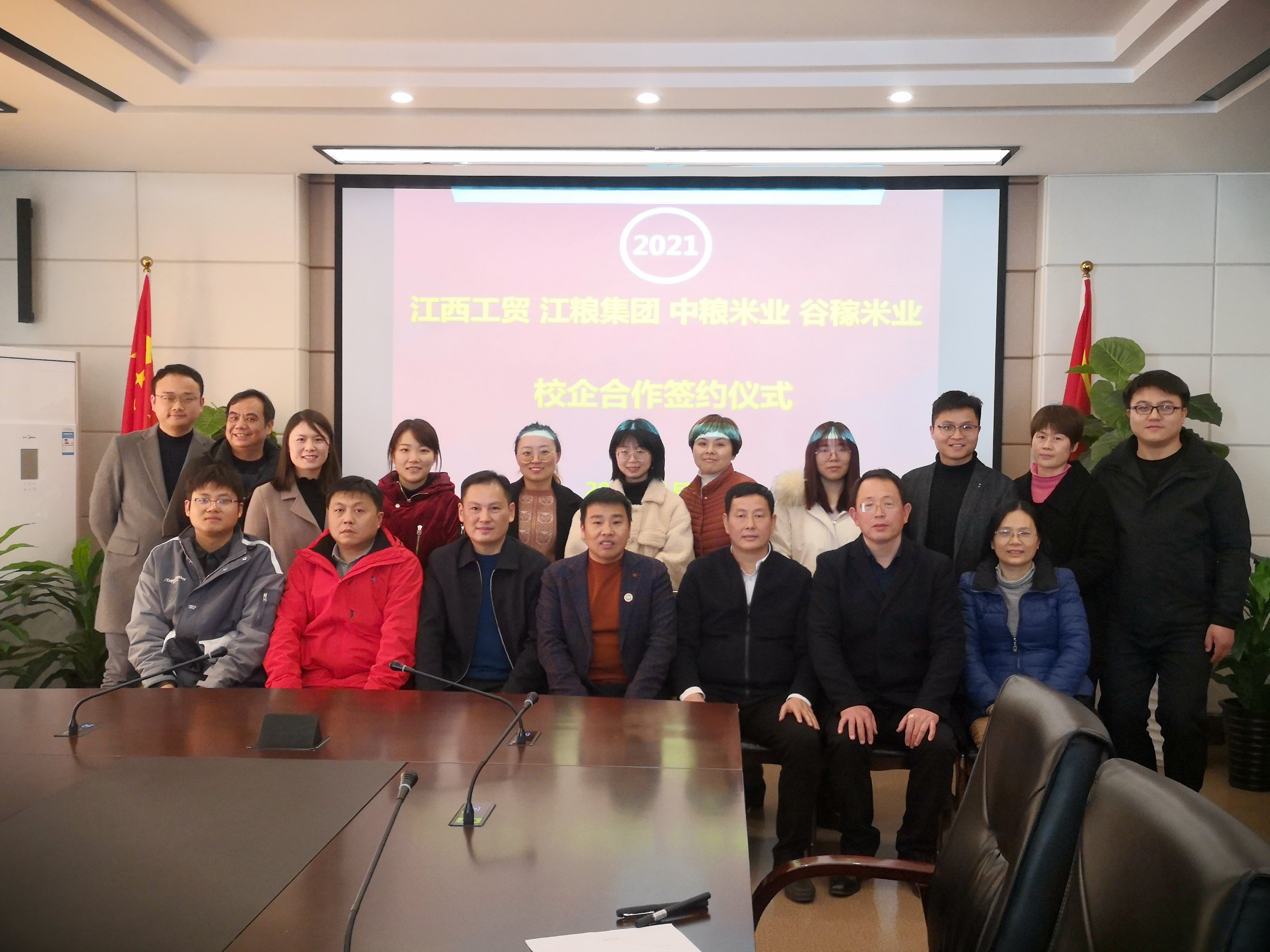 1月18日,学院与江西省粮油集团有限公司、中粮(江西)米业有限公司、九江谷稼米业有限公司举行校企合作签约仪式,双方签订了校企合作协议,并相互授牌。学院副院长宋小兵、江粮集团纪委书记杨志远、谷稼米业董事长邓书甄、中粮(江西)米业综合部经理童文琪出席签约仪式,学院产学研培发展中心及粮油食品系等部门负责人参加仪式。仪式由粮油食品系刘玉珍老师主持。