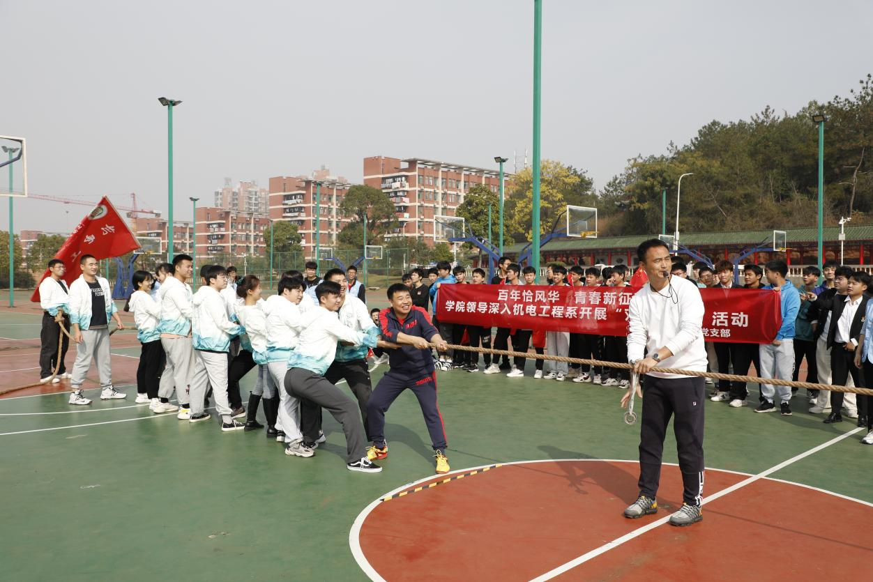 11月19日下午,宋小兵来到篮球场,与机电工程系全体教师、学生代表共同开展“拔河比赛”“袋鼠运南瓜”“摸石过河”“绑腿竞走”四个集体比赛项目。
