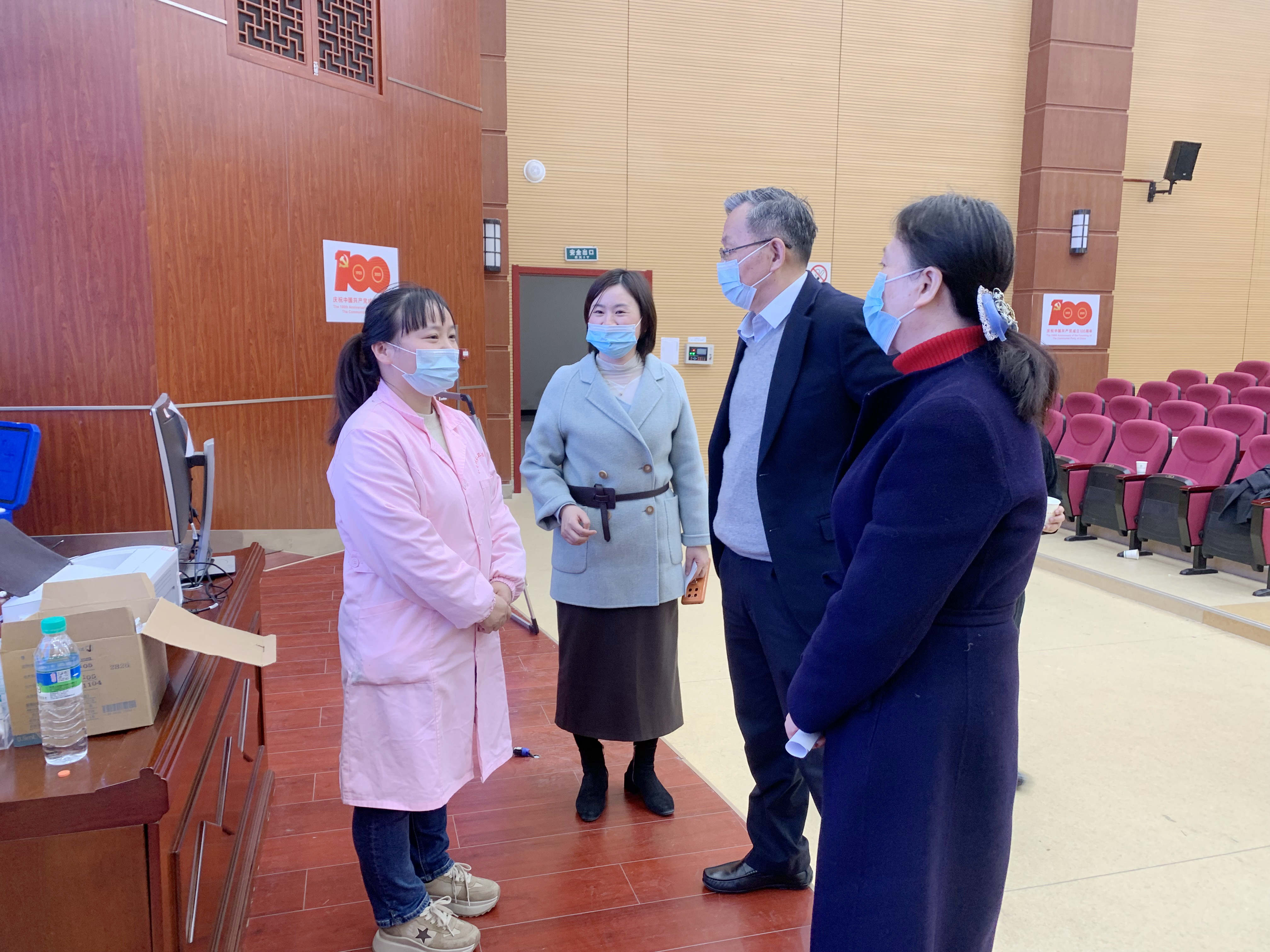 为保障师生的生命安全和身体健康,响应国家疫苗接种“应接尽接、应快尽快”的号召,发挥新冠疫苗在构筑免疫屏障中的重要作用,12月20日至23日,学院在图书馆集中开展新冠疫苗第三针即“加强针”的接种工作,学院党委书记万玉青、院长雷筱芬前往接种加强针现场检查指导工作。