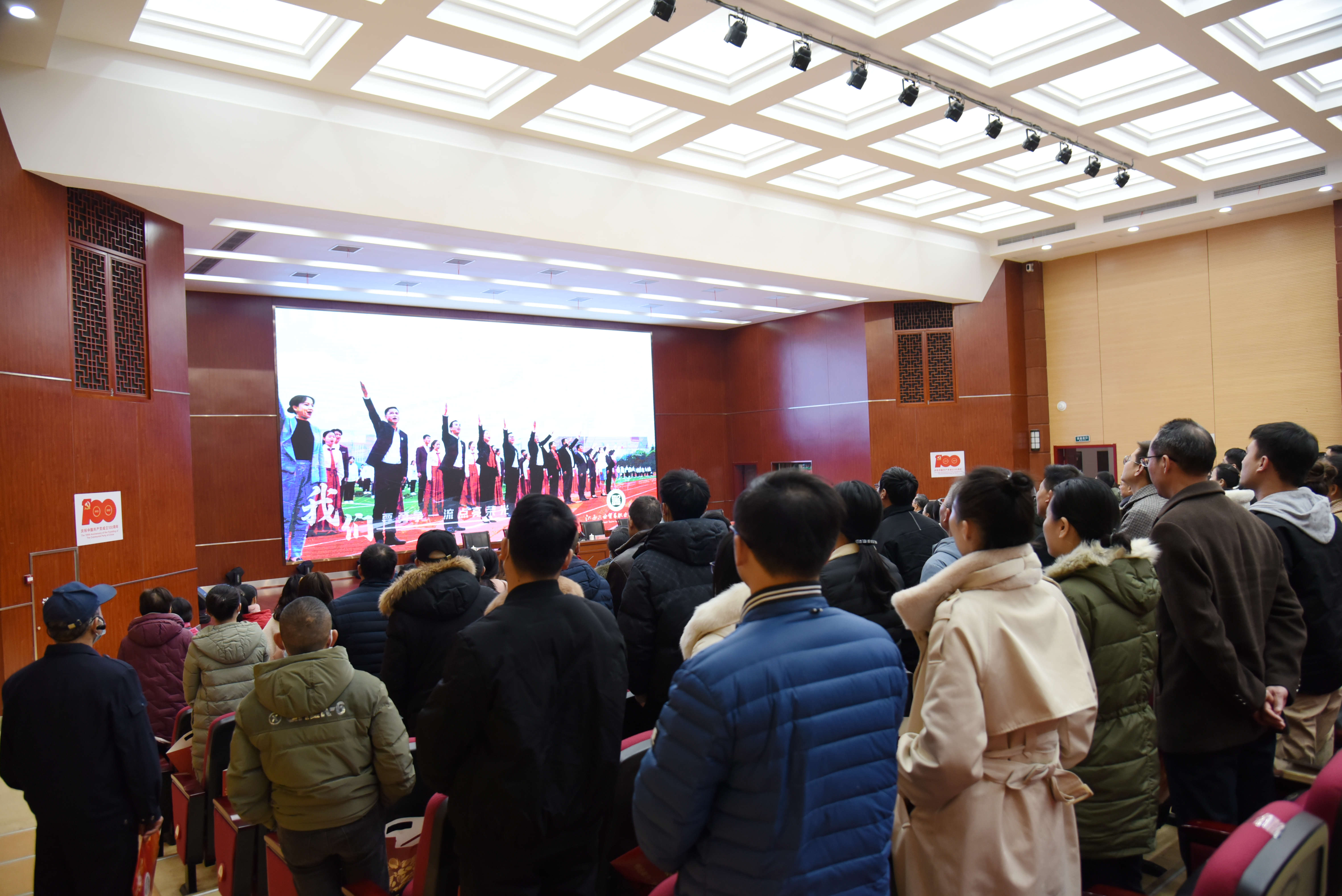会议在庄严的国歌声中拉开帷幕。全体教职工观看了视频《奋进正当时,砥砺再扬帆》,一同回顾了2021年全院教职工坚守教育报国初心,勇担立德树人使命的奋斗历程,在党的建设、人才培养、社会服务、治理能力等方面都取得了丰硕成果,谱写了学院高质量发展的新篇章。