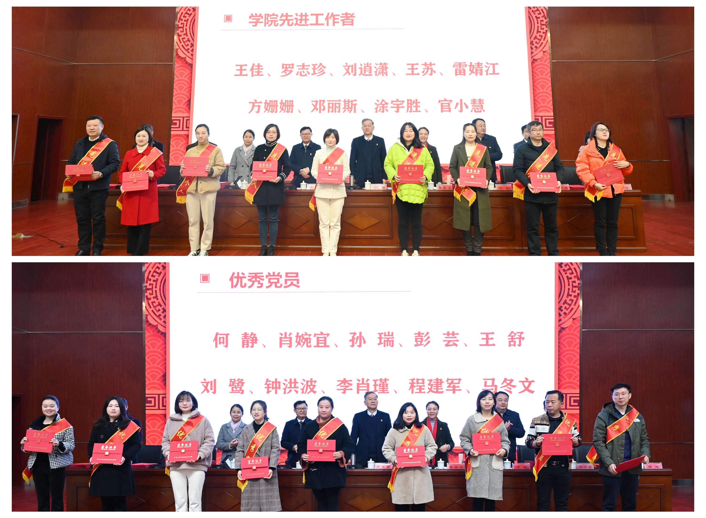 全体院领导为受表彰的先进集体和个人颁奖。