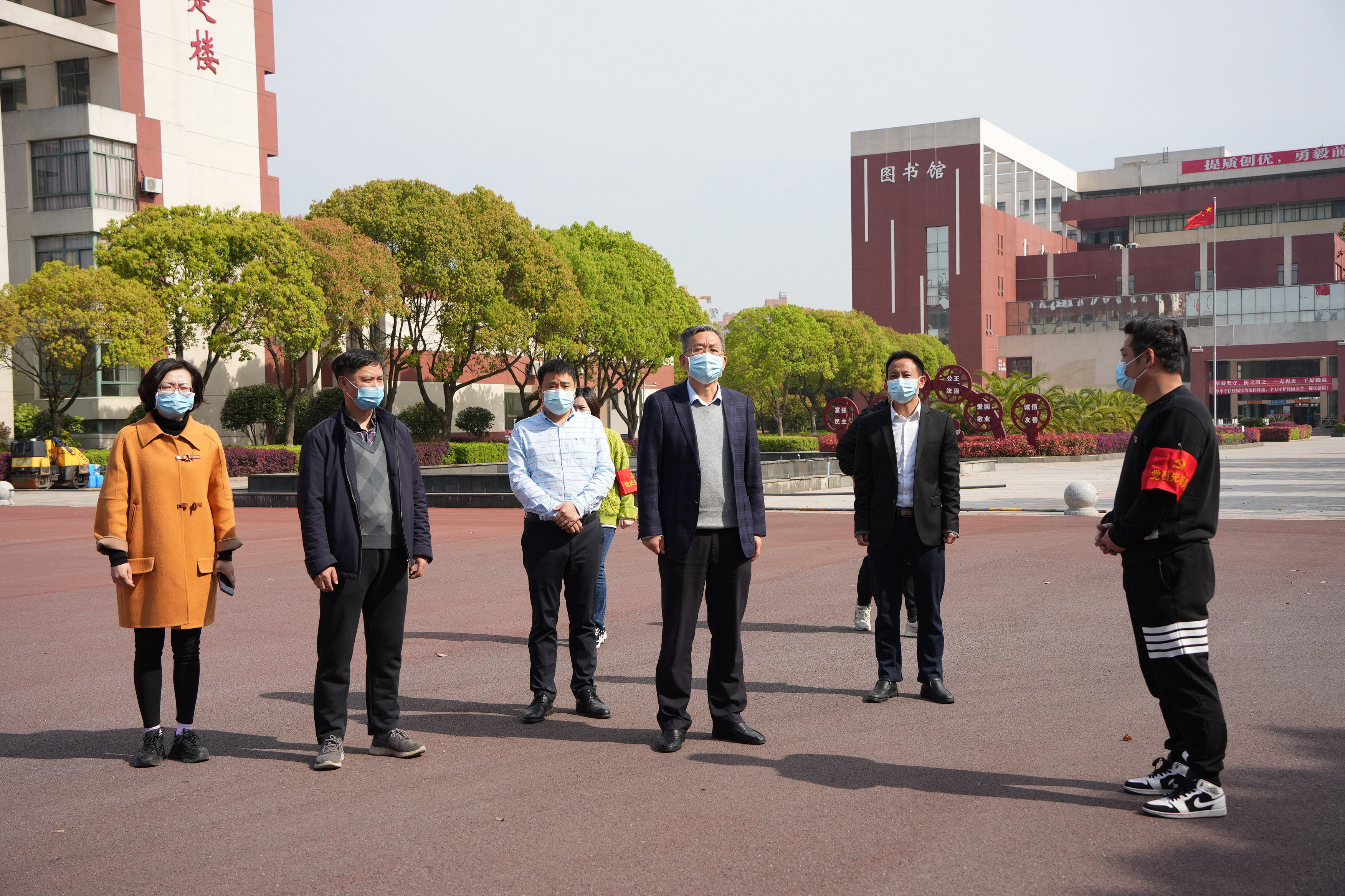 4月4日上午,学院党委书记万玉青,党委委员、副院长宋小兵、刘国红,党委委员、院长助理艾苏龙深入学院疫情防控工作一线,看望慰问坚守岗位的党员干部、教职工、后勤保卫人员,学院办公室、党委办公室负责人陪同慰问。