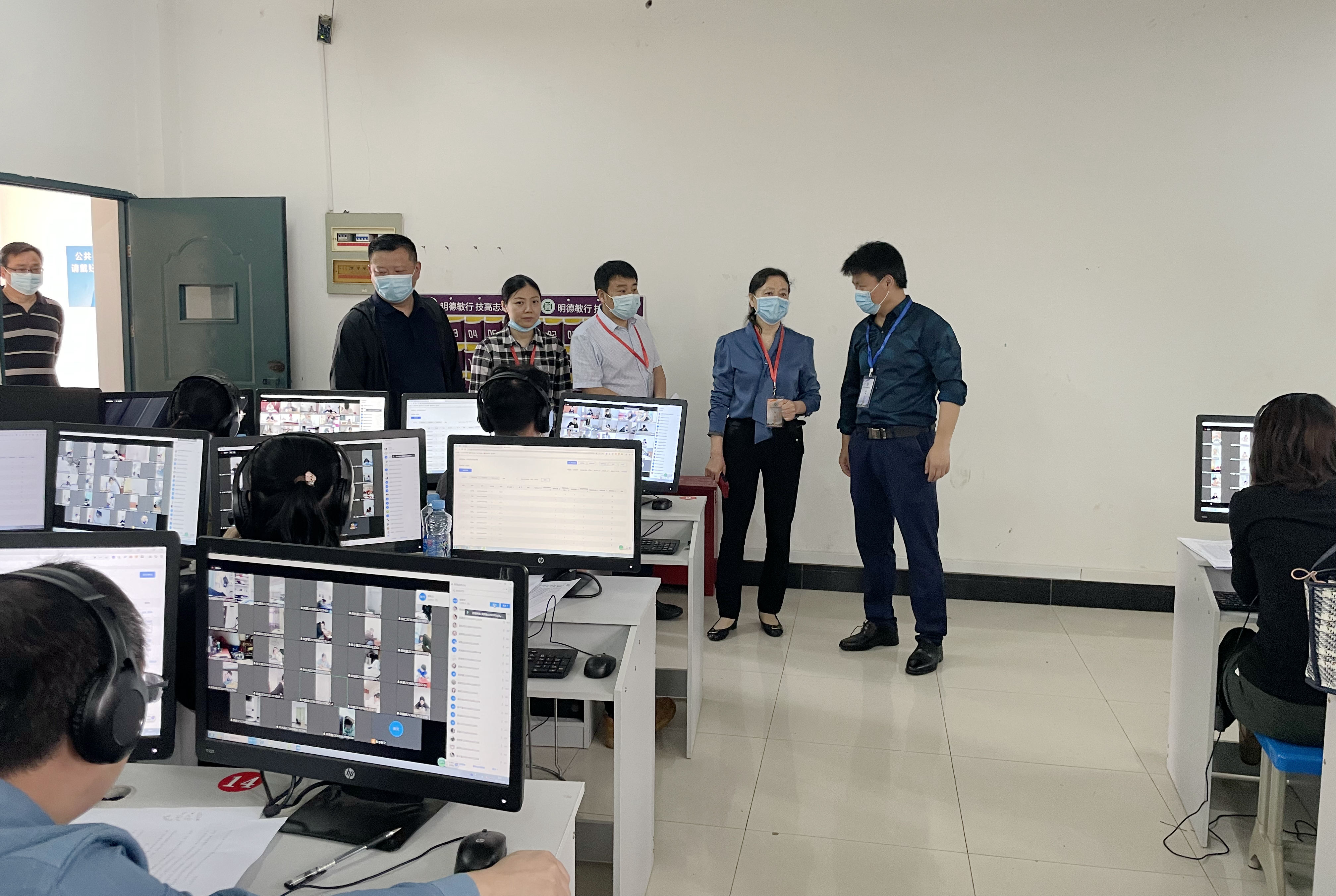 4月23日上午8点,学院2022年单招线上考试正式开考。院长雷筱芬、副院长宋小兵到校内监考现场检查指导单招考试情况,详细查看考场安排情况、考生参加考试情况以及网络保障情况等。