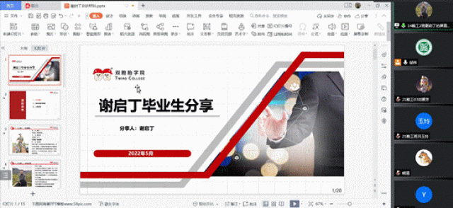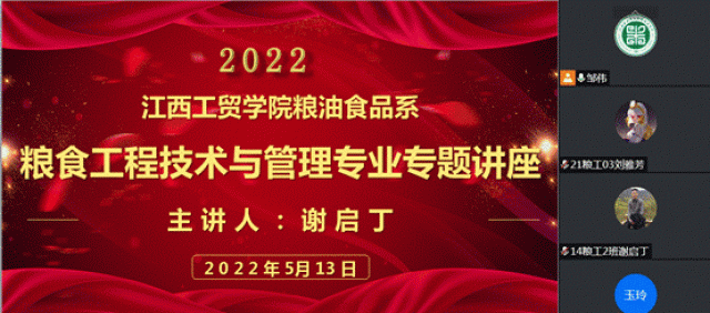 立足粮食饲料岗位,传承粮人匠心,为引领粮食工程技术与管理专业学生满怀激情投入大学生活,明晰个人职业生涯规划,2022年5月13日晚,粮油食品系邀请14级粮食工程技术与管理专业优秀毕业生暨双胞胎生产经理谢启丁与20级、21级同学们云交流共分享。