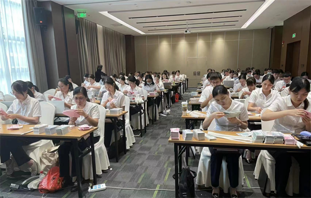 6月23日进行传票算业务技能培训。袁三梅教师给学员讲授了计算器按键规范,同时强调了传票找页、翻页的动作要领,掌握记数、录入的技巧,要求大家按规范操作,练好基本功。经过一天6轮的测试,大家的成绩一次比一次有进步。