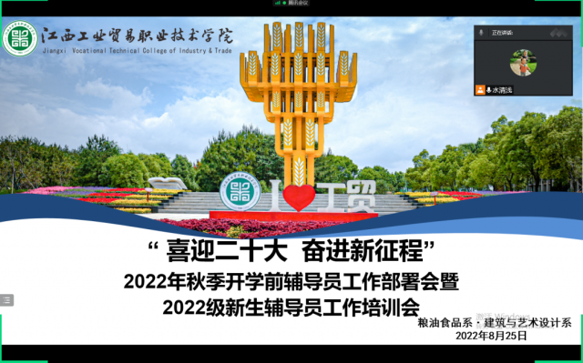 为进一步加强我系辅导员队伍建设,做好2022年秋季学期疫情防控和在校生入学前后各项工作,帮助和引导2022级辅导员树立正确的职业思想和育人理念,提升转岗人员的辅导员工作业务能力,帮助辅导员尽快进入学生思政工作角色。8月25日,粮油建艺系召开喜迎二十大奋进新征程——2022年秋季开学前辅导员工作部署会暨2022级新生辅导员工作培训会。系学工副主任黄丽、学管员、团总支书记及系全体辅导员共50余人参加本次培训,培训由学管员主持。