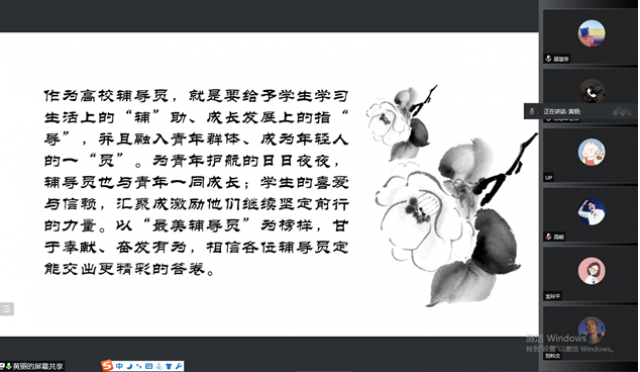 随后,黄丽以如何成为一名优秀的辅导员为主题,以生动的案例,解读了“四美”的内涵和意义,她指出,作为高校辅导员,就是要给予学生学习生活上的“辅”、成长发展上的“指导”,并且融入青年群体、成为年轻人的一“员”。为青年护航的日日夜夜。辅导员也与青年一同成长;学生的喜爱与信赖,汇聚成激励他们继续坚定前行的力量,希望各位辅导员以“最美辅导员”为榜样甘于奉献、奋发有为,为学院的人才培养作出更大贡献,喜迎党的二十大召开。