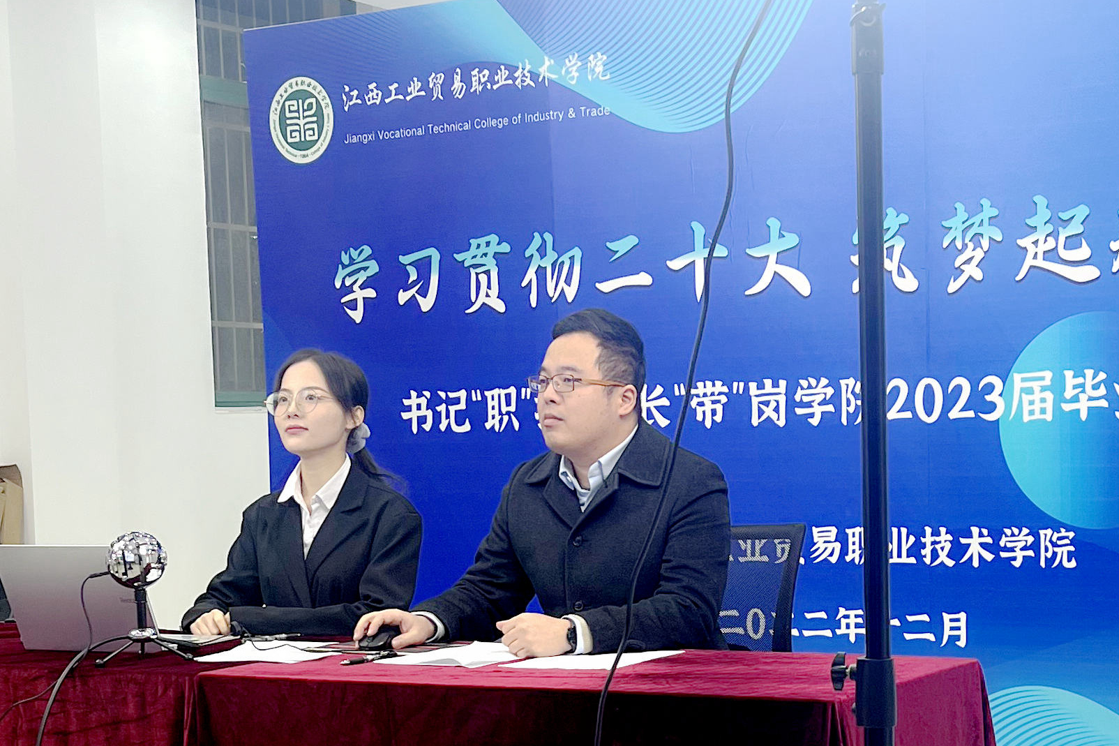 为深入学习宣传贯彻党的二十大精神,实施就业优先战略,强化就业优先政策,实现2023届毕业生高质量充分就业。学习贯彻二十大,筑梦起航新征程——书记“职”播、院长“带”岗,学院2023届毕业生招聘会于12月2日在启航楼就业创业服务中心正式启动。学院党委书记万玉青,党委副书记、院长万晓波,党委委员、院长助理艾苏龙出席启动仪式,就业创业学院、各专业系负责人,分管就业工作副主任、就业干事、学生代表、用人单位代表和全体2023届毕业生参加启动仪式。
