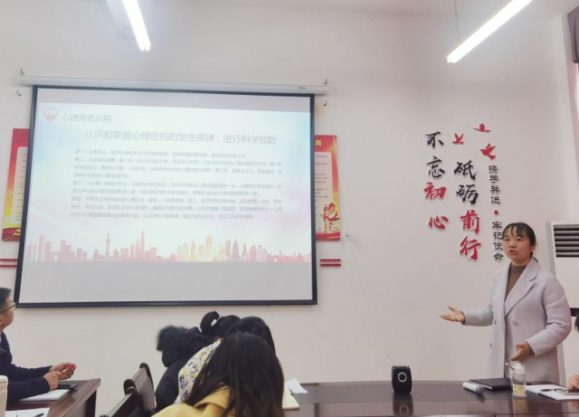 系心理负责老师熊莉阐述了心理危机干预概念、总结了心理危机的发生规律,识别方法、自杀信号,并就心理危机干预对策进行了交流分享。