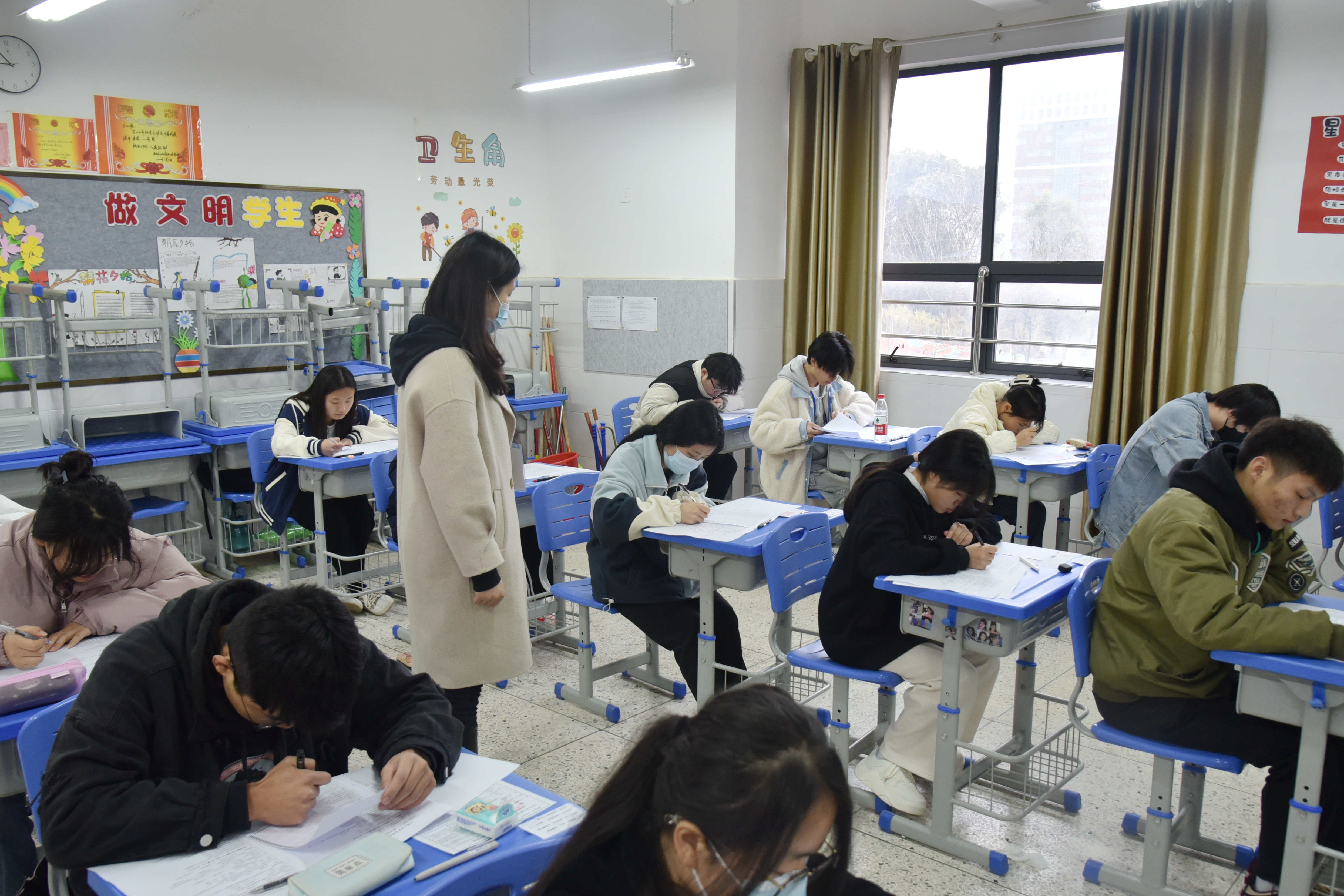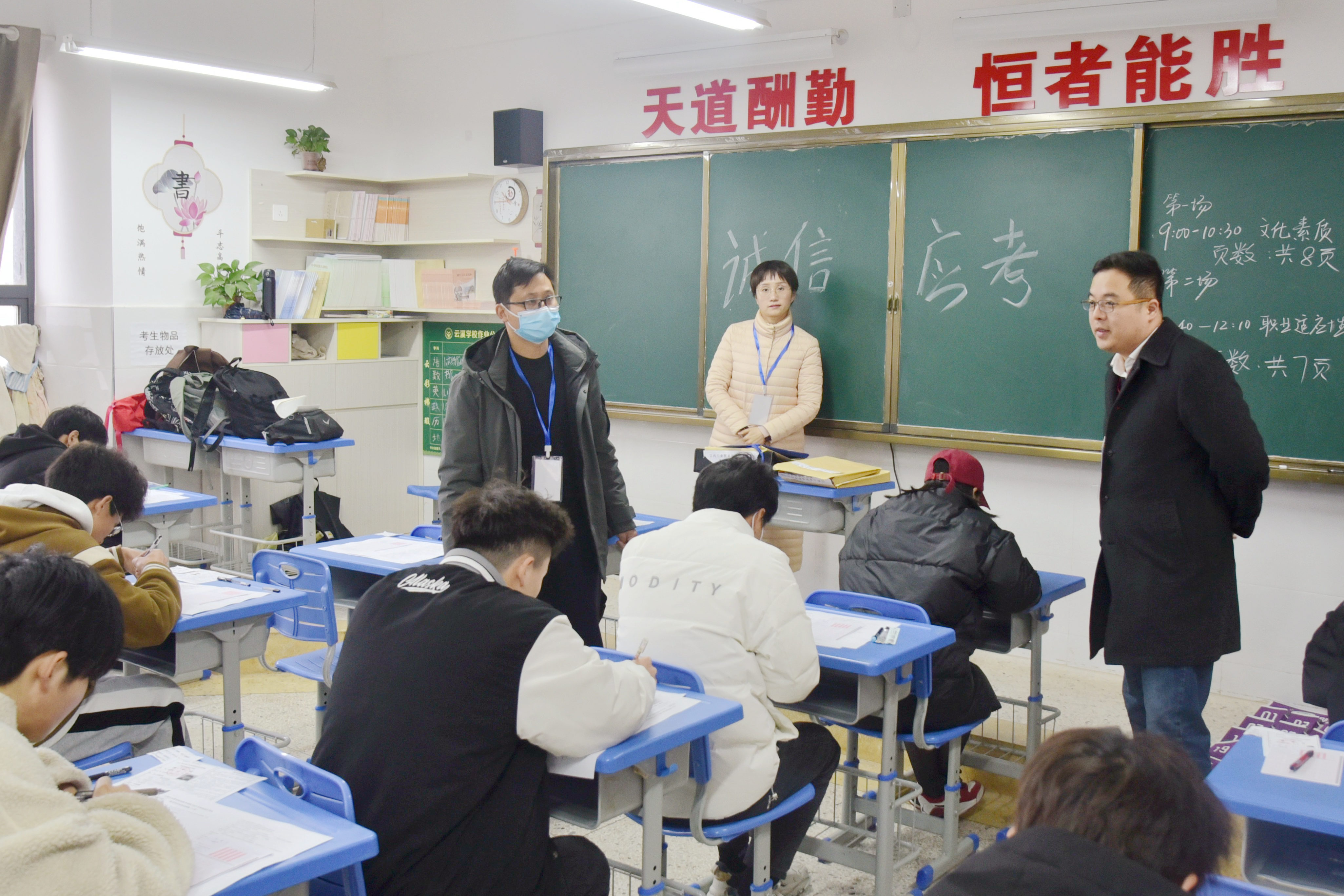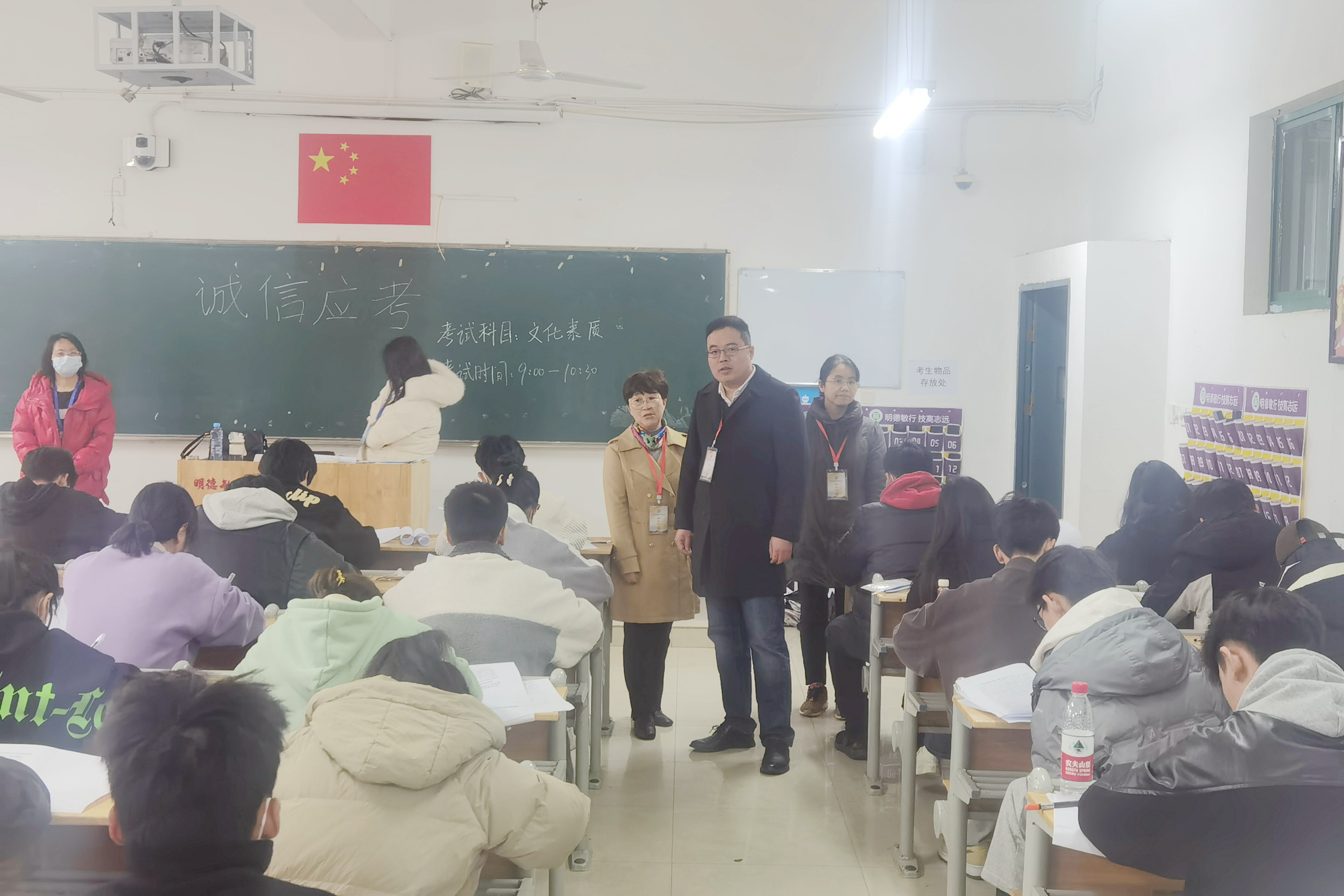 “请同学将手机、电子手表等一切电子产品放在前面的手机袋里”“下面宣读考场纪律”3月19日上午,江西工业贸易职业技术学院2023年单招考试正式开考。此次单招考试共有5994名考生报名,笔试科目主要有文化素质考试和职业适应性考试,部分专业安排了现场面试。学院党委副书记、院长万晓波,党委委员、副院长赵淑华、胡晖对考风考纪、候考秩序、考务工作等进行了现场巡查督查,并进一步强调了考场纪律的严肃性,要求全体工作人员要以高度的政治责任感和大局意识、担当精神,认真扎实做好单招考务工作,全力保障单招考试规范、公正。