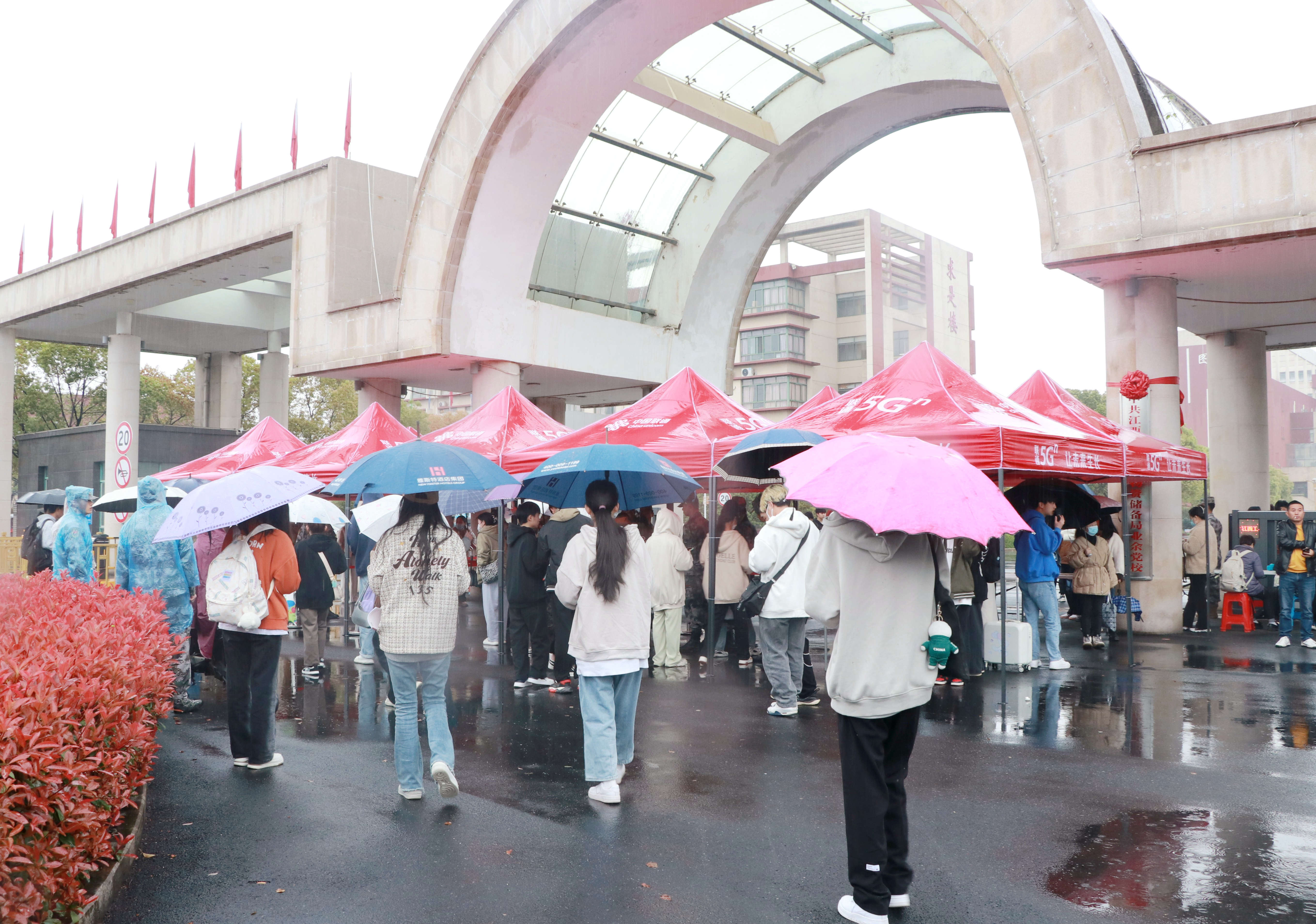 早上7点,考务人员和学生志愿者、各考务小组协调联动,开展考生核验工作,提供考场指引等服务,随时为考生解决各类问题,全力保障考试顺利进行。上午9点,准时开考,考场内,考生们握紧笔杆,奋笔疾书,以最饱满的状态,书写自己的未来。一名来自赣州的考生表示,学院考务工作准备充分,考场分布指示清晰、老师和志愿者们服务周到,希望能考出好成绩,金秋时节到工贸报到。