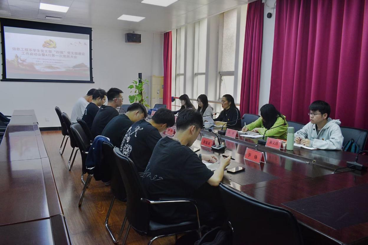 思想是行动的先导,理论是实践的指南。为深入学习宣传贯彻党的二十大精神和习近平新时代中国特色社会主义思想,落实省局和学院党委关于推进基层党组织全面进步全面过硬的要求,4月11日下午14:10,信息工程系学生党支部在思泽楼315召开“四强”党支部建设工作启动会暨四月份第一次政治学习。会议由信息工程系学生党支部书记陶晓峰主持,信息工程系学生党支部全体同志参加会议。