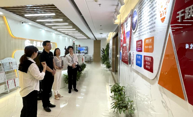 李尊华一行来到千跃众创中心,参观了企业发展历程展览、员工工作环境等场所,详细了解企业文化、人才需求、发展规划等,并与企业负责人就学院专业建设、校企合作、人才培养、实习就业等方面交换了意见。在与企业交流中,李尊华表示,高校办学离不开社会各方面的支持,学校一贯秉承开放式办学理念,积极探索多种校企合作新模式,希望校企双方能够本着“优势互补、资源共享、互惠双赢、共同发展”的原则,达成以党建引领、专业建设、学生实习就业、社会服务等方面进一步拓宽合作领域,全方位、长期性、深层次的合作交流,努力为学生争取更为广泛优质的就业平台。