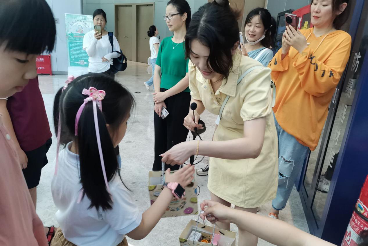 活动由旅游商务系韩莹副主任、周万中、黄悦老师和童话一“夏”创客空间的志愿者们进行组织引导,共有社区42位亲子参加。亲子游戏是亲子交流方式的重要内容,为增强亲子互动,在参观前,开展了捉泥鳅及手拉手钻山洞等亲子游戏。游戏过程中,家长和孩子们积极参与,尽情投入,营造了温馨、活跃、其乐融融的亲子互动氛围,让孩子和家长、老师、志愿者们的距离更加亲近。为丰富活动的开展,旅游商务系为每一位小朋友都准备了精美的活动礼品。