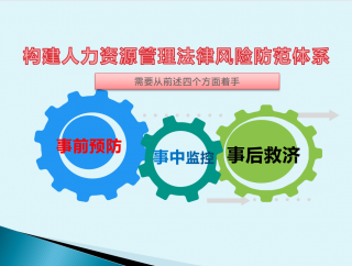 其次,学姐通过自己从事律师接触到的真实案例来告诉我们,从人力资源管理的流程来看,培训、招聘、使用、淘汰等每个环节都很有可能存在法律风险隐患。那我们又如何来规避这些风险,如何建立起一个合理的防范体系呢?她提到一定要分别从事前预防、事中监控、事后救济三个方面进行着手。
