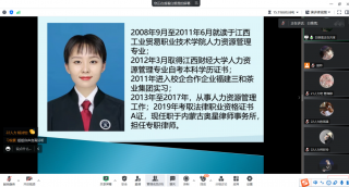 为提升人力资源管理专业学生HR法律技能,6月2日晚7点,旅游商务系人力资源管理专业优秀毕业生《企业人力资源管理的法律风险与规避》专题讲座在腾讯会议顺利举行。本次专题讲座由商务教研室主任周万中老师主持,邀请2011届人力资源管理专业优秀毕业生——白艳雪律师为21、22级的人力专业114位学弟学妹们分享人力资源管理的法律风险与规避知识以及职场心得体会。
