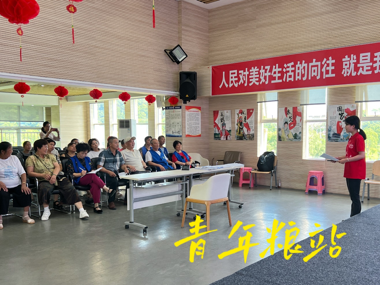 为提高社区老年人身体素质,普及保健养生知识,6月27日下午,“青年粮站”实践队队员前往东湖名都社区为老年人开展了“情暖夕阳健康同行”老年人夏季健康养生讲座活动,此次活动共有20余名社区老人参加。