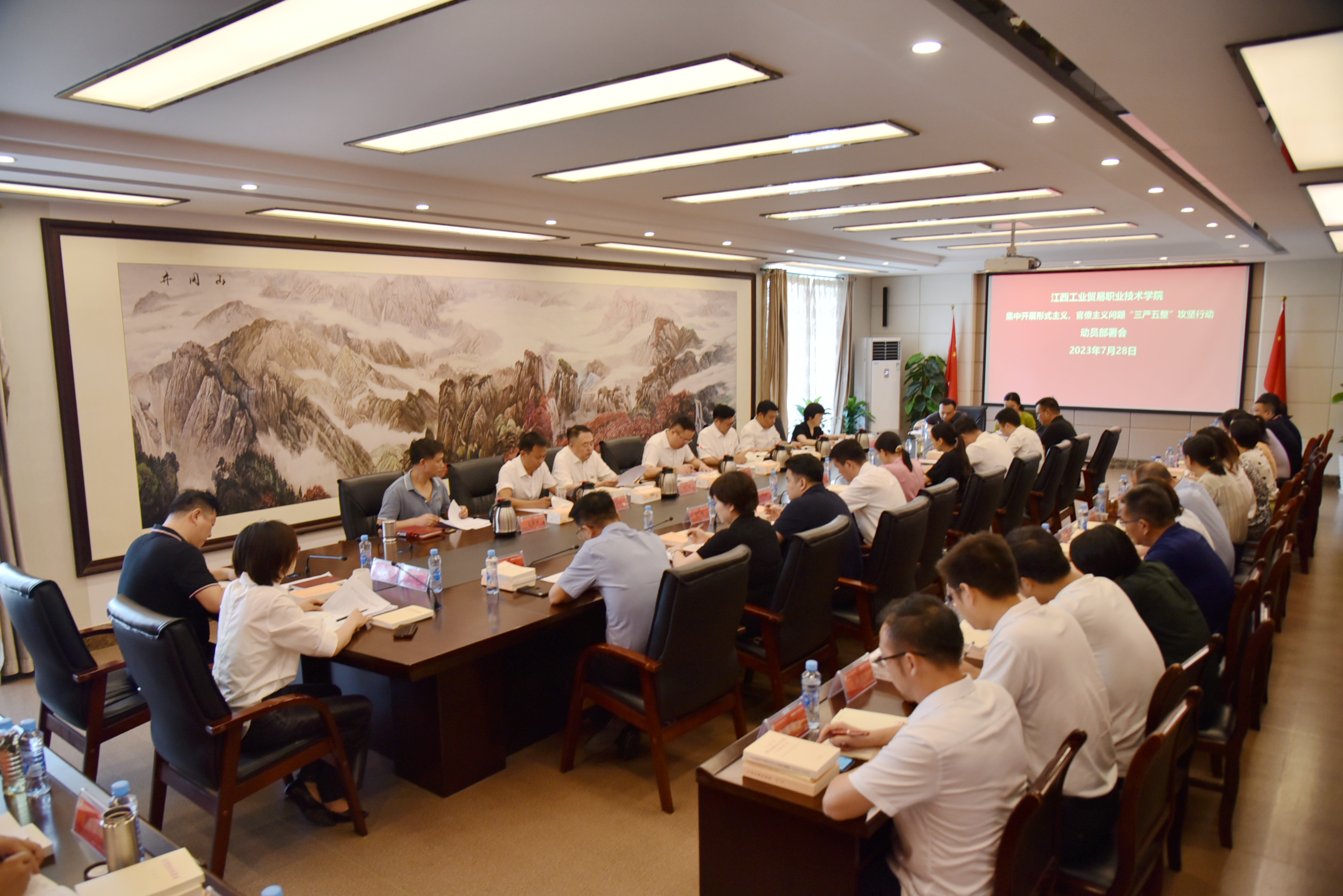 7月28日上午,根据江西省粮食和物资储备局工作部署和学院主题教育工作安排,学院召开集中开展形式主义、官僚主义问题“三严五整”攻坚行动动员部署会,研究学院做好集中整治工作的具体措施。学院全体院领导及中层干部参会,党委副书记、院长万晓波主持会议并作总结讲话。