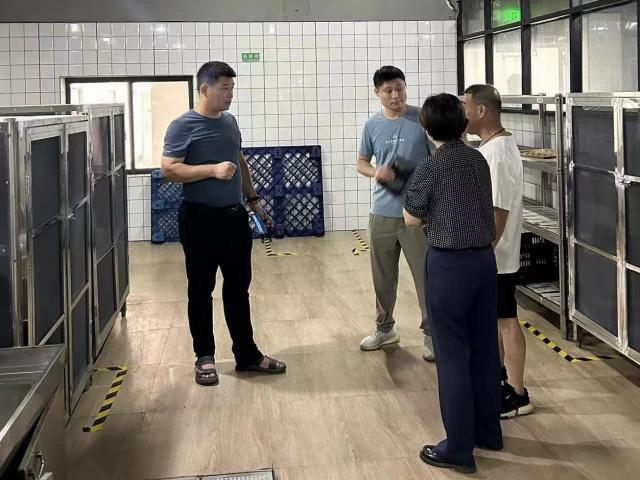 理论学习结束后,所有食品从业人员回到各自工作岗位上,后勤服务中心主任雷婧江陪同红谷滩市场监管局专家一同前往食堂,现场查看食堂环境、设施设备及从业人员情况,并提出整改意见。