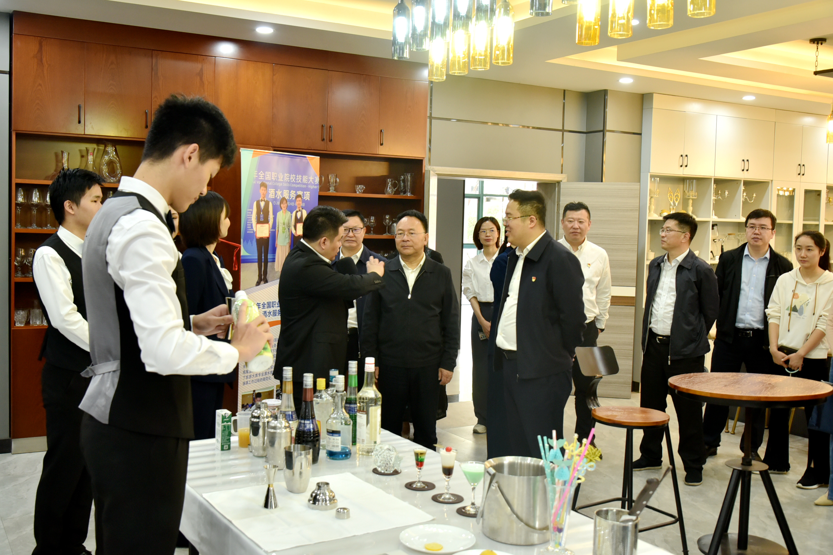 吴军组长一行先后实地调研了学院综合实训大楼康养中心、智慧酒店、学生就业创业展厅、纪委谈话室和智慧纪检系统建设及学生食堂,详细了解学院近年来推动高质量发展和全面从严治党情况。实地调研结束后,在学院求是楼第二会议室召开了专题座谈会,座谈会由学院党委副书记彭锐主持。