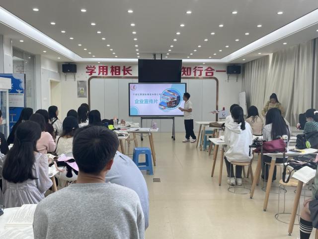 宁波巨贾国际物流有限公司总经理郭小如首先对本公司的发展史进行介绍,随后就服务体系、企业前景以及企业竞争优势分别讲解。不少同学们在提问环节中表达了对国际物流行业的好奇,并于宣讲会结束后积极投送简历,郭经理对优秀同学进行现场面试。