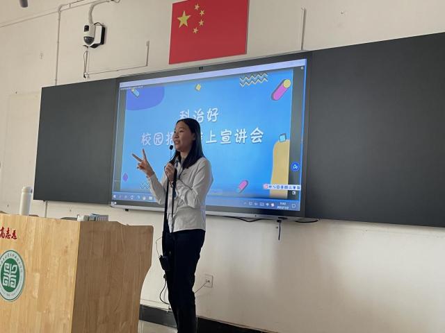 深圳科治好连锁有限公司人力资源部陈晓璇随后进行宣讲。宣讲会上负责人以视频、图片结合讲解等方式,从企业文化、企业核心价值观、企业岗位需求及用人标准、企业人才储备及人才培养等多方面进行宣讲,为同学们了解企业打开了一个窗口,帮助同学们确定未来职业生涯规划。