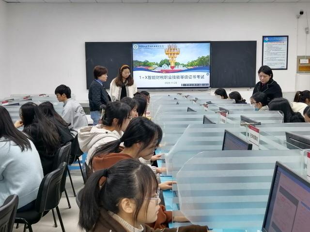 为贯彻落实教育部《国家职业教育改革实施方案》精神,持续推进1+X证书制度试点工作,11月25日上午,由中联教育科技有限公司主办的全国1+X智能财税职业技能等级证书考试在我院顺利举行。来自2022级大数据与会计专业、大数据与财务管理专业的80名同学参加了考试。