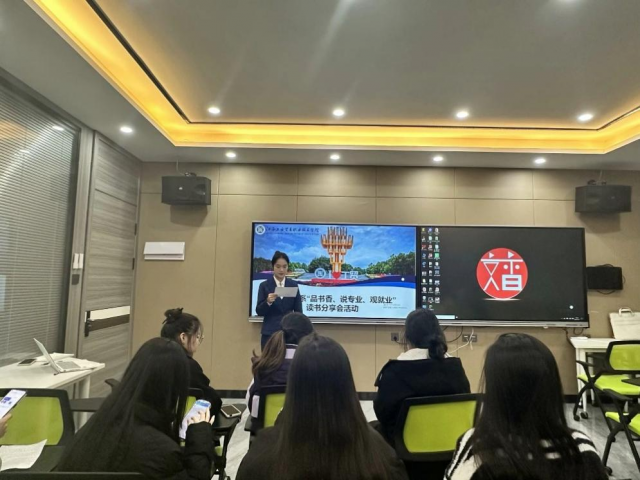 为深入学习贯彻党的二十大精神,深入了解新时代党团结带领全国人民走过的奋斗历程、实现的伟大变革、取得的辉煌成就和新征程的使命任务,不断增强民族自豪感。旅游商务系于2023年12月7日晚上7点在芳泽楼智慧酒店开展了“品书香、说专业、观就业”读书分享会。