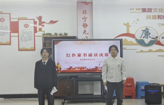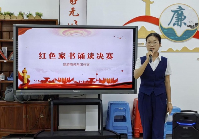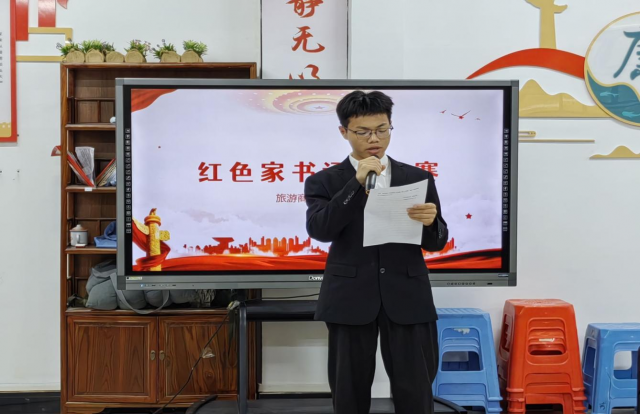 为进一步深化红色文化铸魂育人,教育引导师生从“红色家书”中重温革命历史、缅怀革命先烈,传承红色基因、牢记时代使命,4月27日晚,旅游商务系团总支举办了一场意义非凡的“红色家书诵读”比赛,让在场同学深受触动。在比赛现场,选手们以饱满的热情和真挚的情感,诵读了一封封感人至深的红色家书。这些家书穿越历史的硝烟,展现了革命先烈们坚定的信仰、无私的奉献和对家国的深情厚爱。