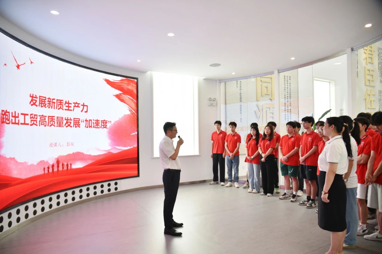 参观调研结束后,彭锐以江中药谷为生动案例,讲授了主题为《发展新质生产力跑出工贸高质量发展“加速度”》的思政课。彭锐指出,培育和发展新质生产力的新赛道为青年科技工作者搭建了施展才华、建功立业的广阔舞台,青年人才是国家战略人才力量的源头活水,建设科技强国、实现高水平科技自立自强,是时代赋予青年的历史重任。并勉励同学们要牢记科学报国、科技强国的初心,笃定奋斗目标、站稳人民立场,把爱国之情、报国之志融入建设科技强国的使命担当,在助力新质生产力发展的新赛道上奋力拼搏,争取跑出当代青年的最好成绩。