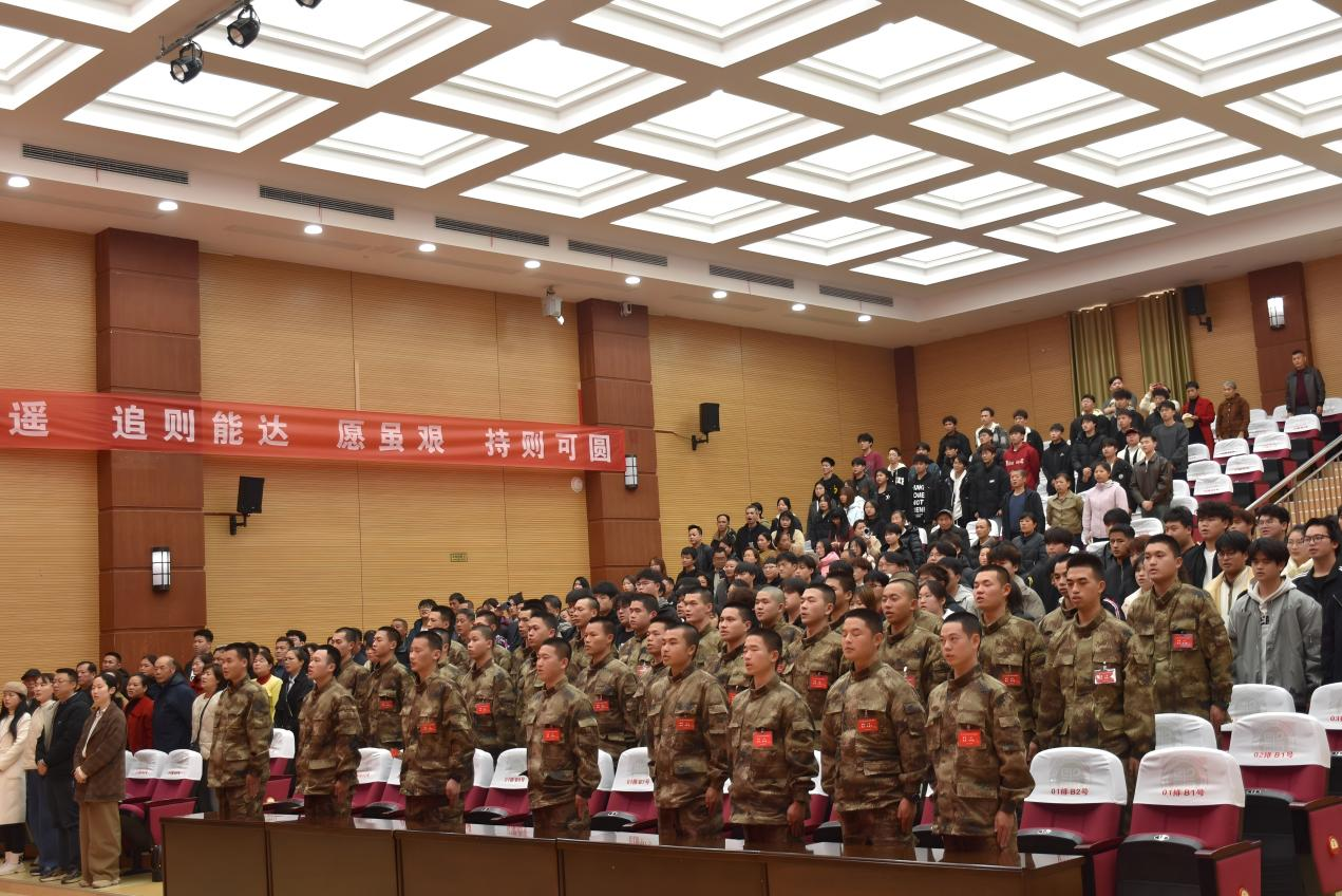 青春逐梦进军营,热血扬帆启新程。3月13日下午,江西工业贸易职业技术学院在图书馆学术报告厅举行2025年大学生应征入伍欢送会,为即将投身绿色军营、保家卫国的工贸学子送行。学院党委副书记吴新谱出席并讲话,各系副主任、武装部全体成员以及参军入伍学生和家长代表齐聚一堂,共同见证这一光荣时刻。欢送会由学院武装部副部长陈新文主持。